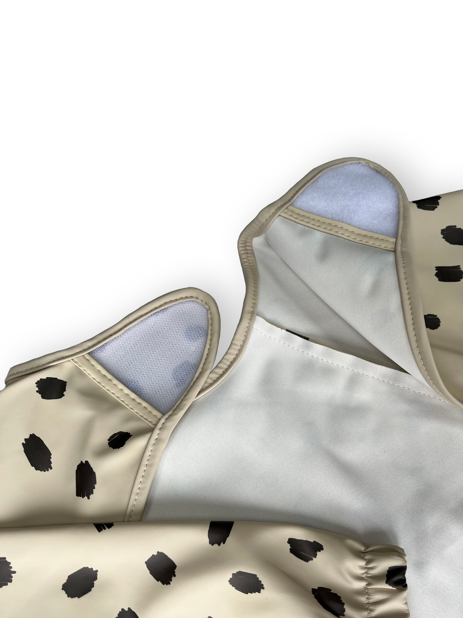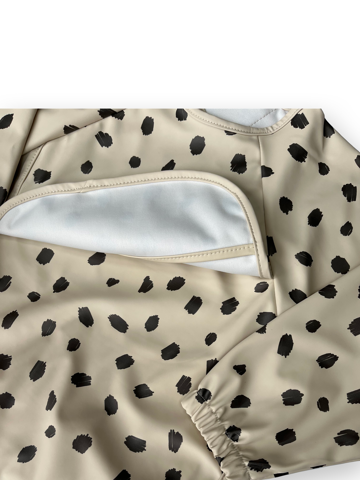Our soft, stylish fabric is also practical. Our Coverall Bibs can be wiped-clean at the end of each meal. They can also be put in the washing machine for a more thorough clean.